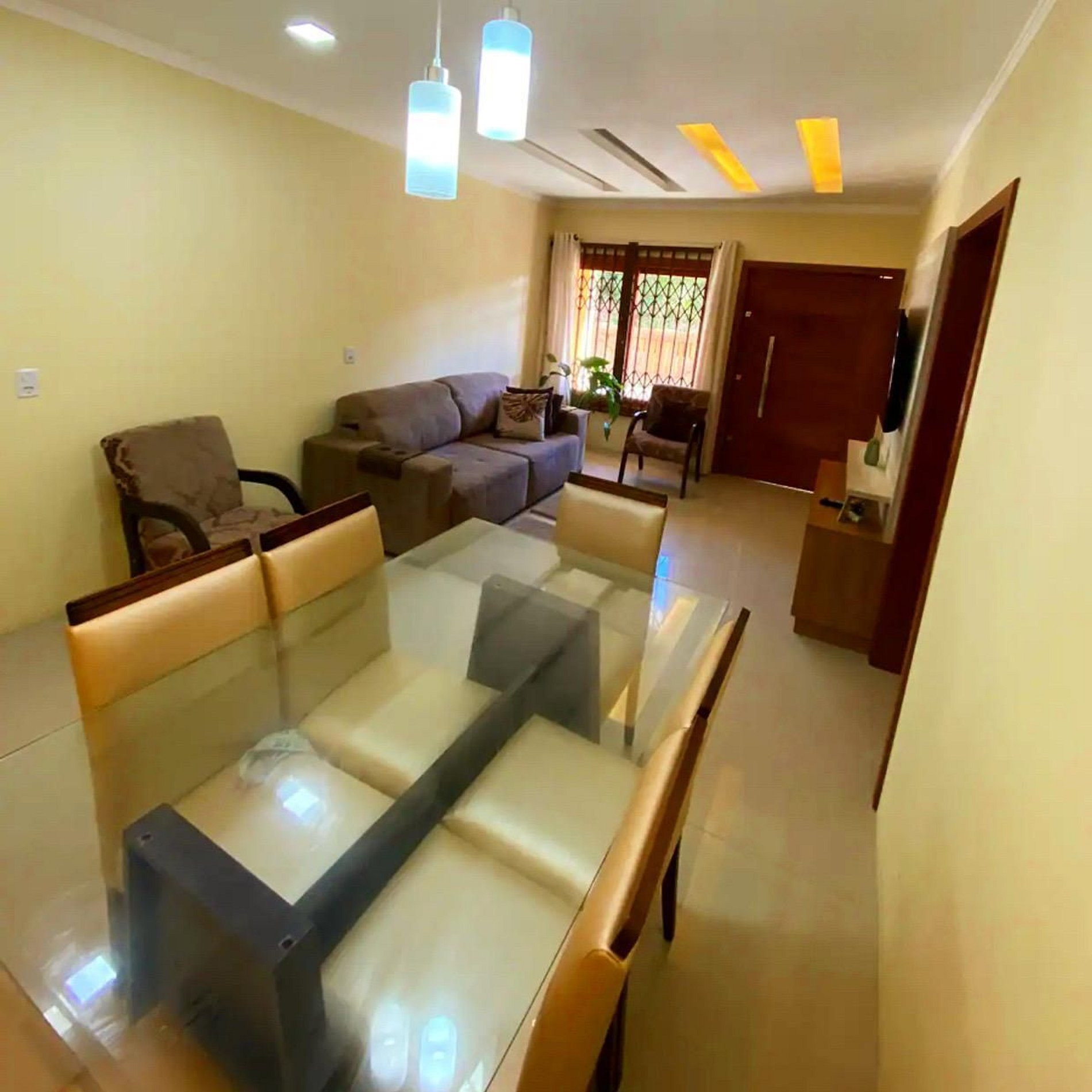 sala com sofá retrátil, tv de 65 polegadas, portão eletronico, casa inteligente compativel com ALEXA