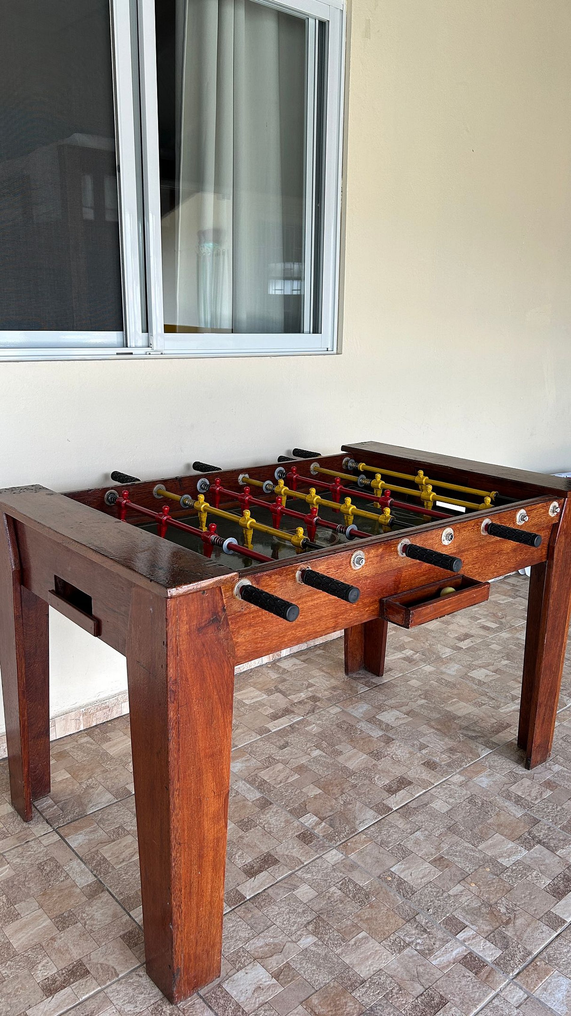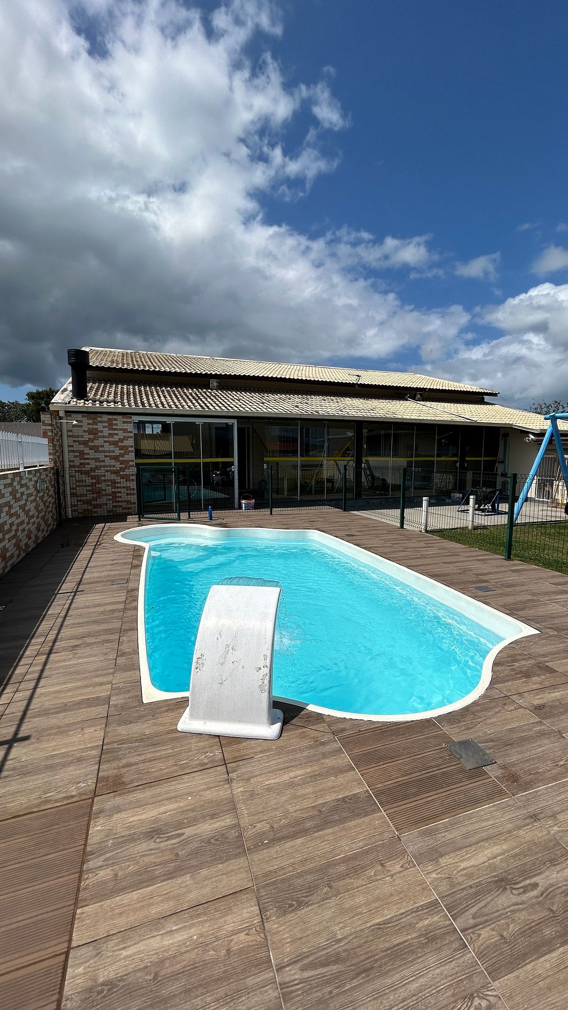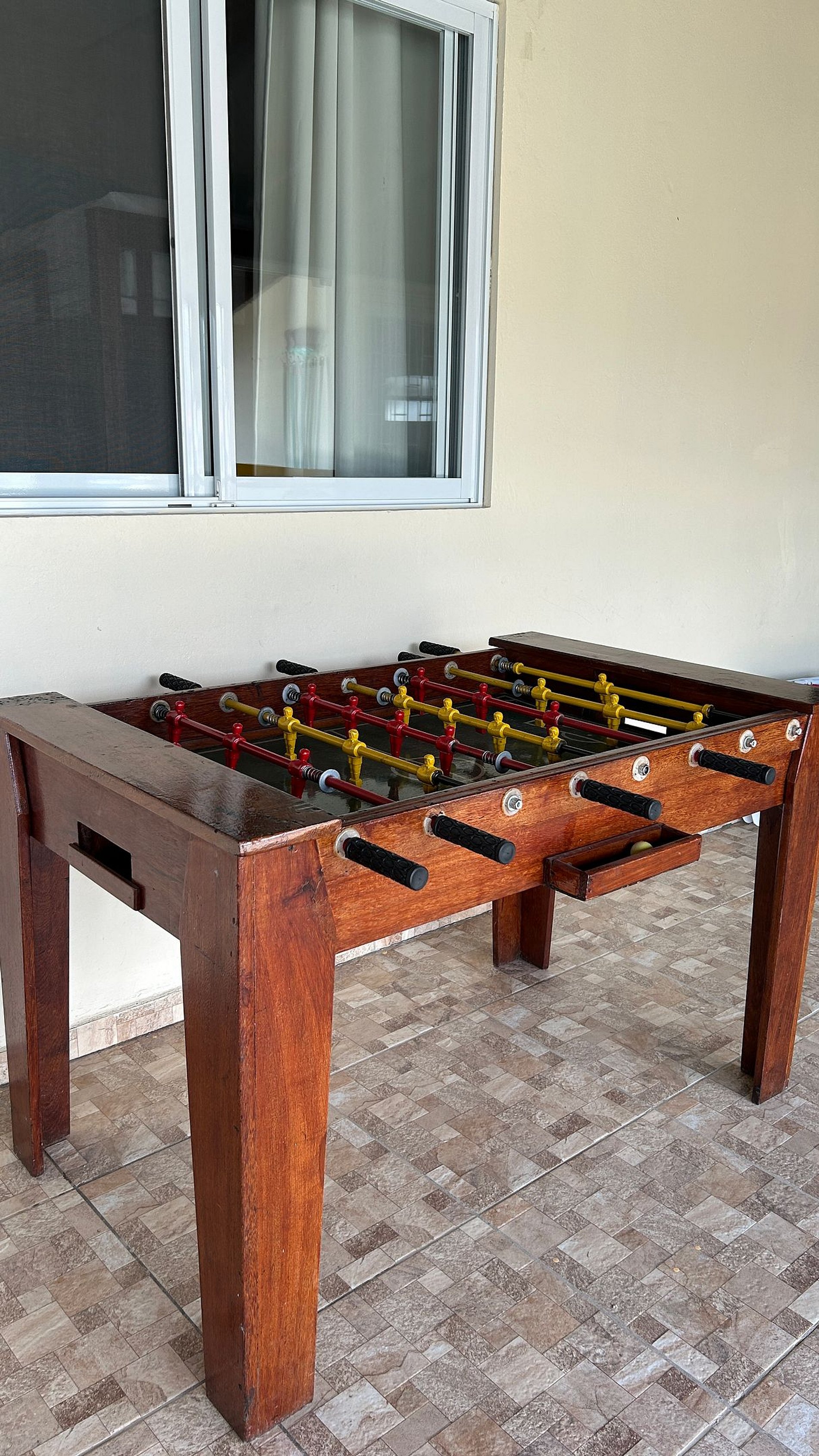 O espaço destinado é toda a casa com quintal murado com portão eletrônico oferecendo privacidade.é climatizada na parte interna, há uma ampla varanda com churrasqueira, maquina de lavar roupas,mesa de pebolim, a piscina oferece segurança para crianças pois é cercada,amplo gramado que proporciona brincadeiras com bola, há rede de volei disponível, A piscina é cercada, garantindo segurança da criança.