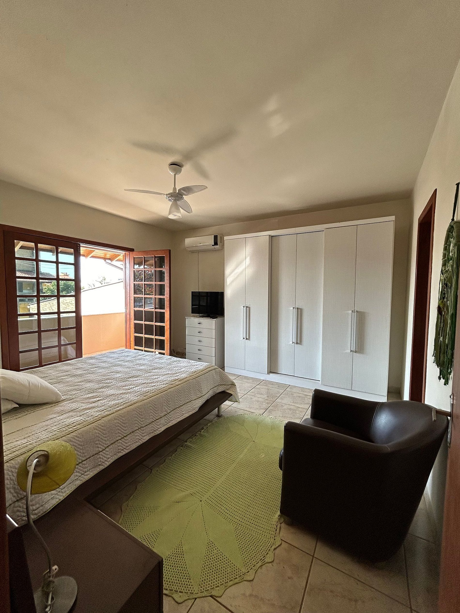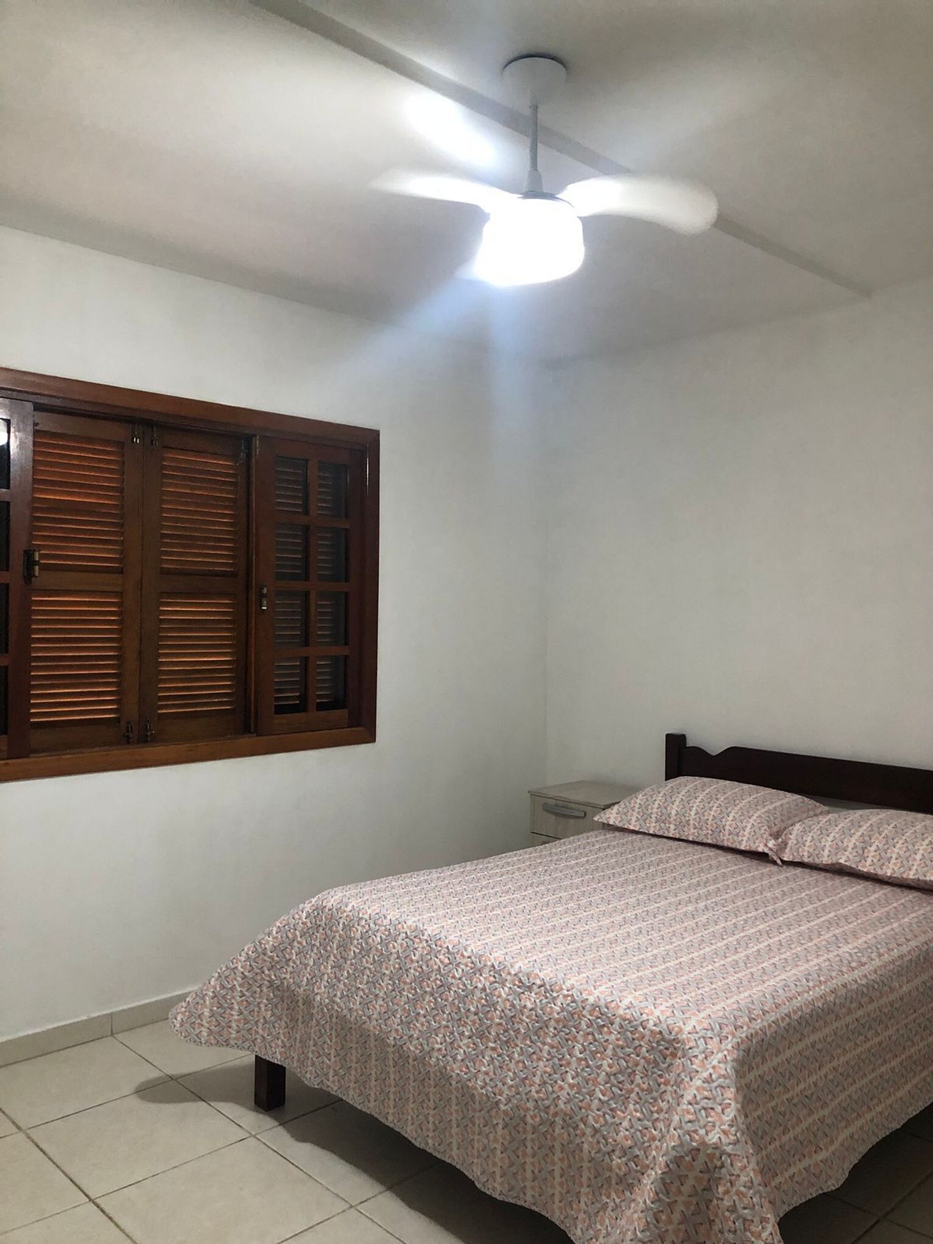 lindo sobrado com 4 quartos sendo um suíte com ar condicionado, sacada ,mais 3 com ventiladores de teto,3 banheiros,, mezanino, cozinha equipada integrada com a sala, casa lindamente mobiliada, com varanda.