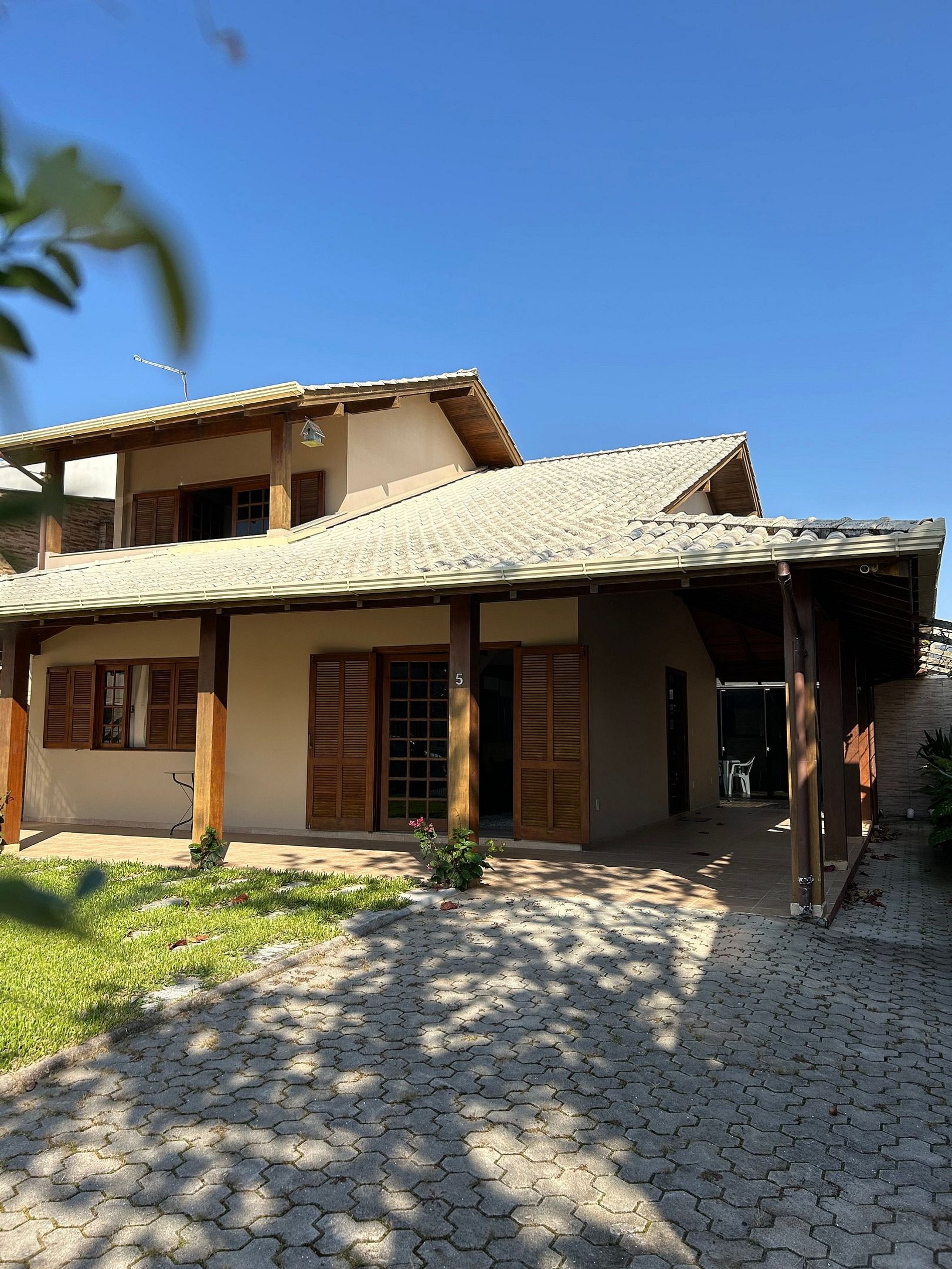 A casa está em rua sem saída, pavimentada, em local tranquilo a @00 metros da Praia de Baixo, no Centro da Pinheira.