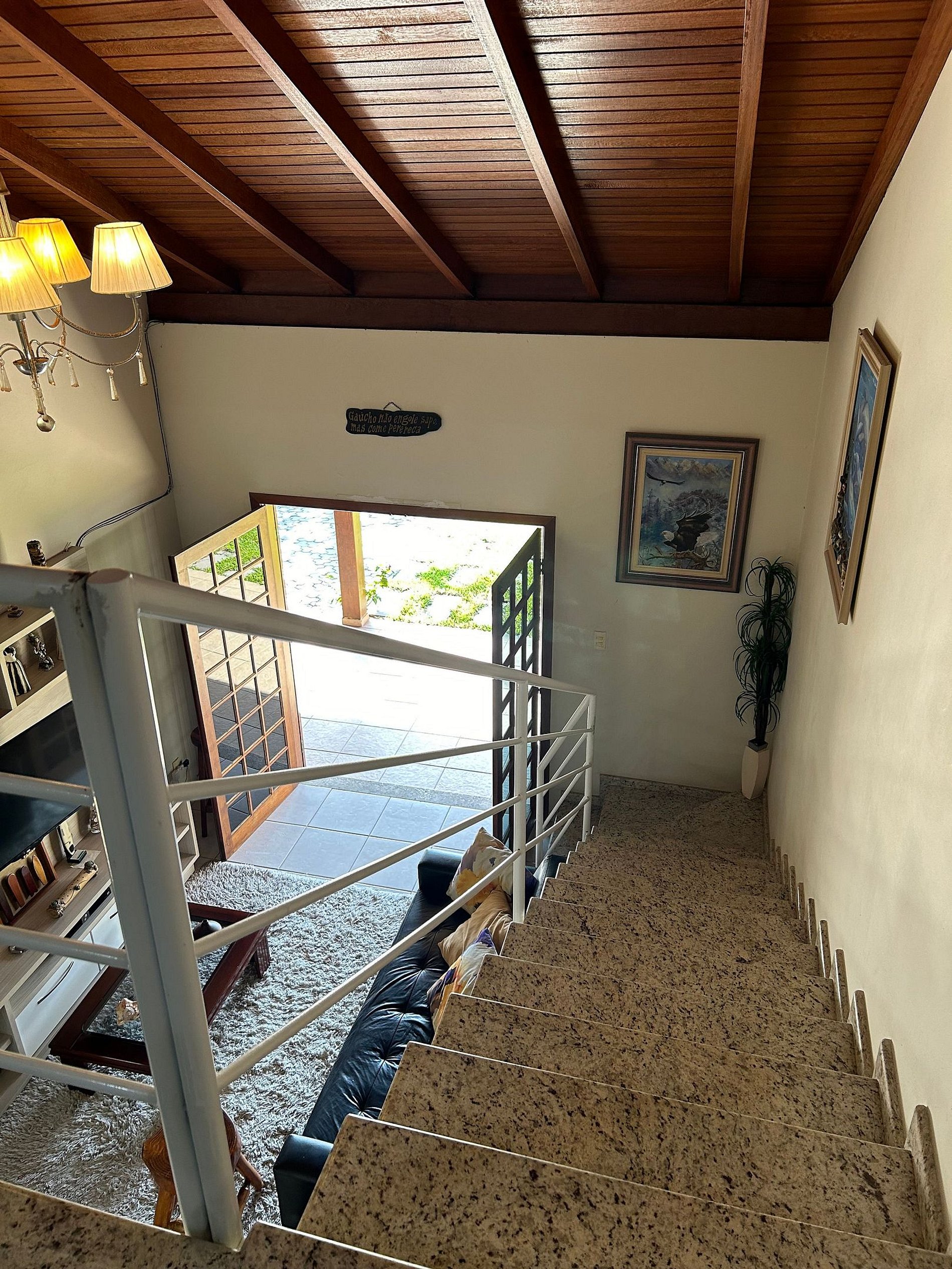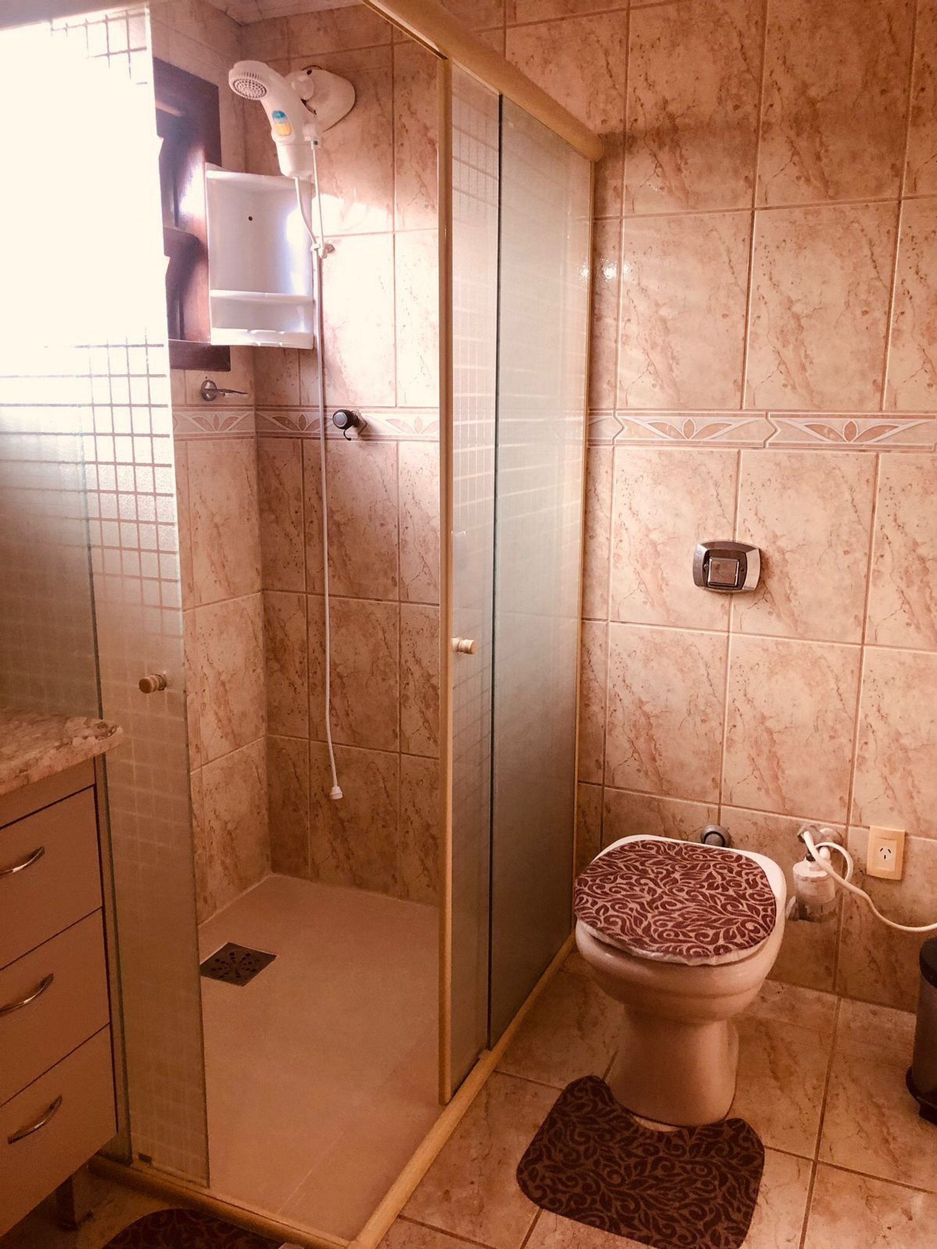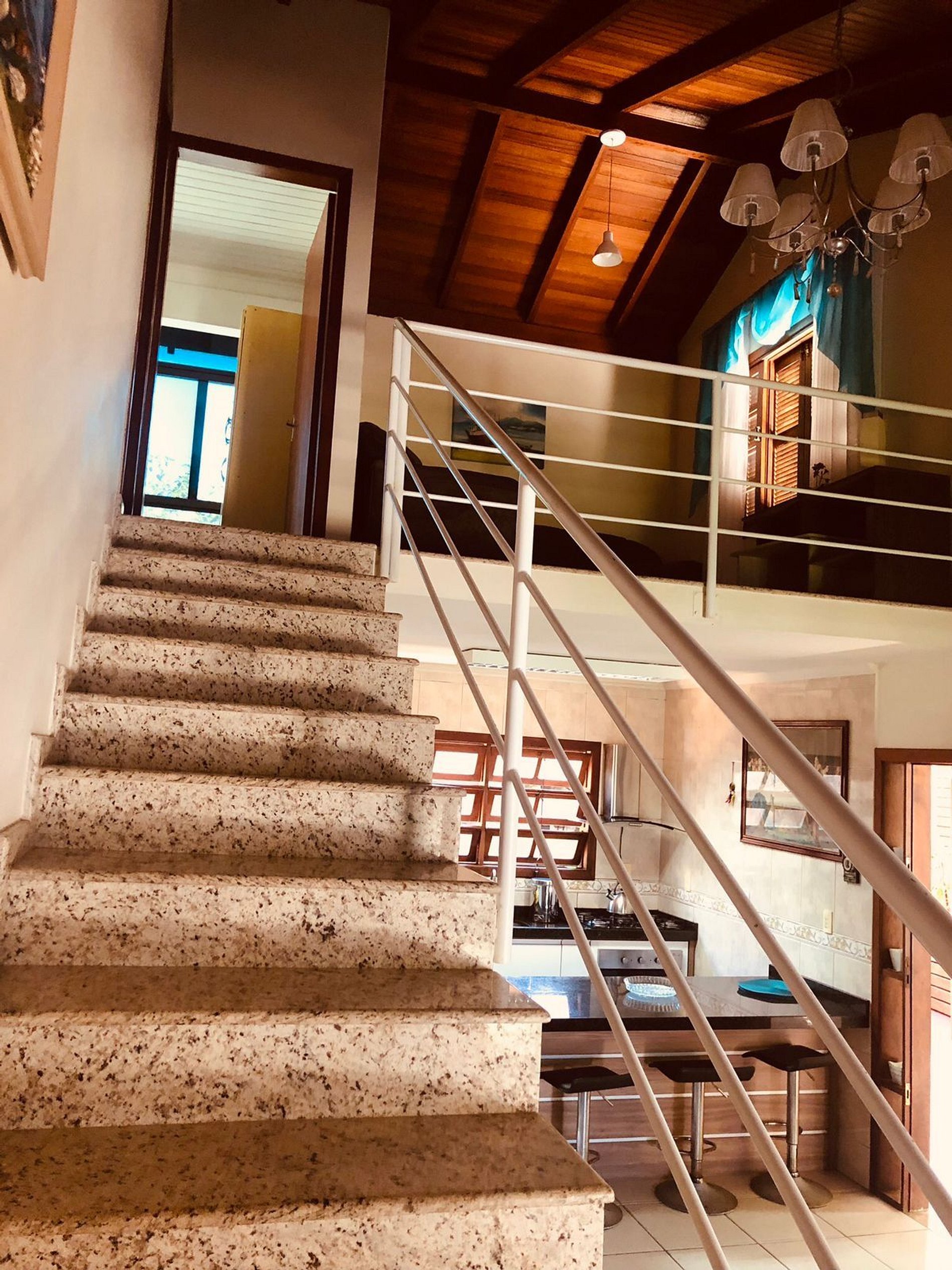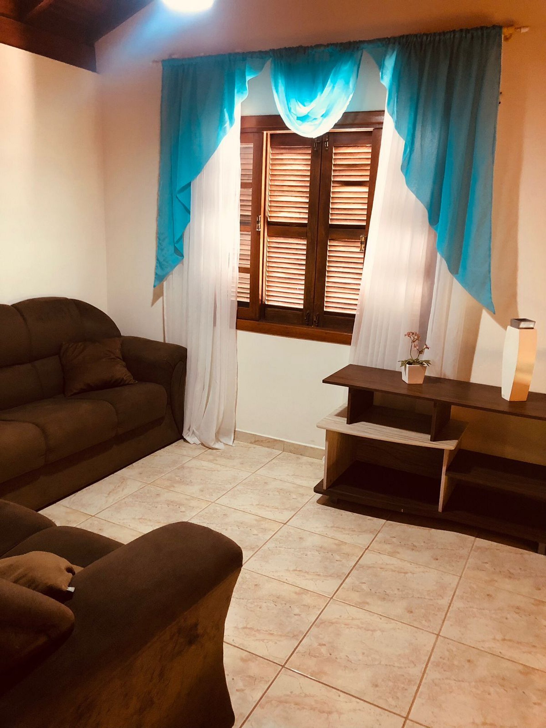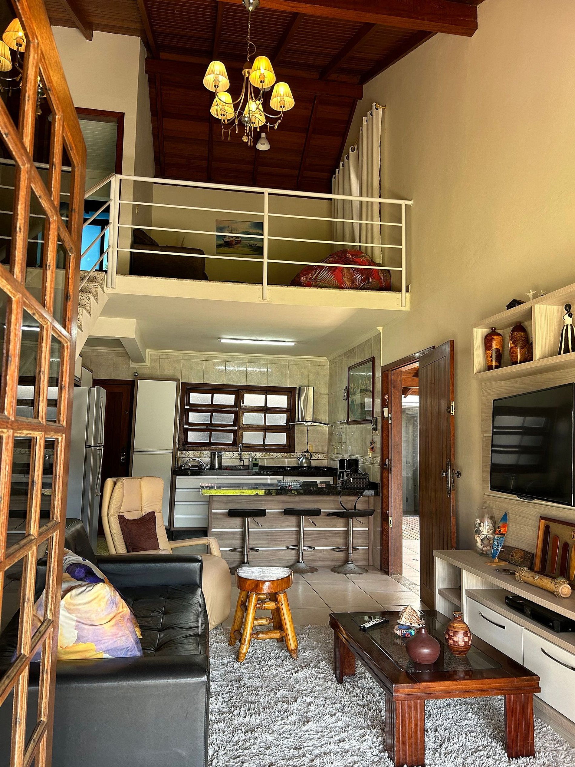 lindo sobrado com 4 quartos sendo um suíte com ar condicionado, sacada ,mais 3 com ventiladores de teto,3 banheiros,, mezanino, cozinha equipada integrada com a sala, casa lindamente mobiliada, com varanda.
