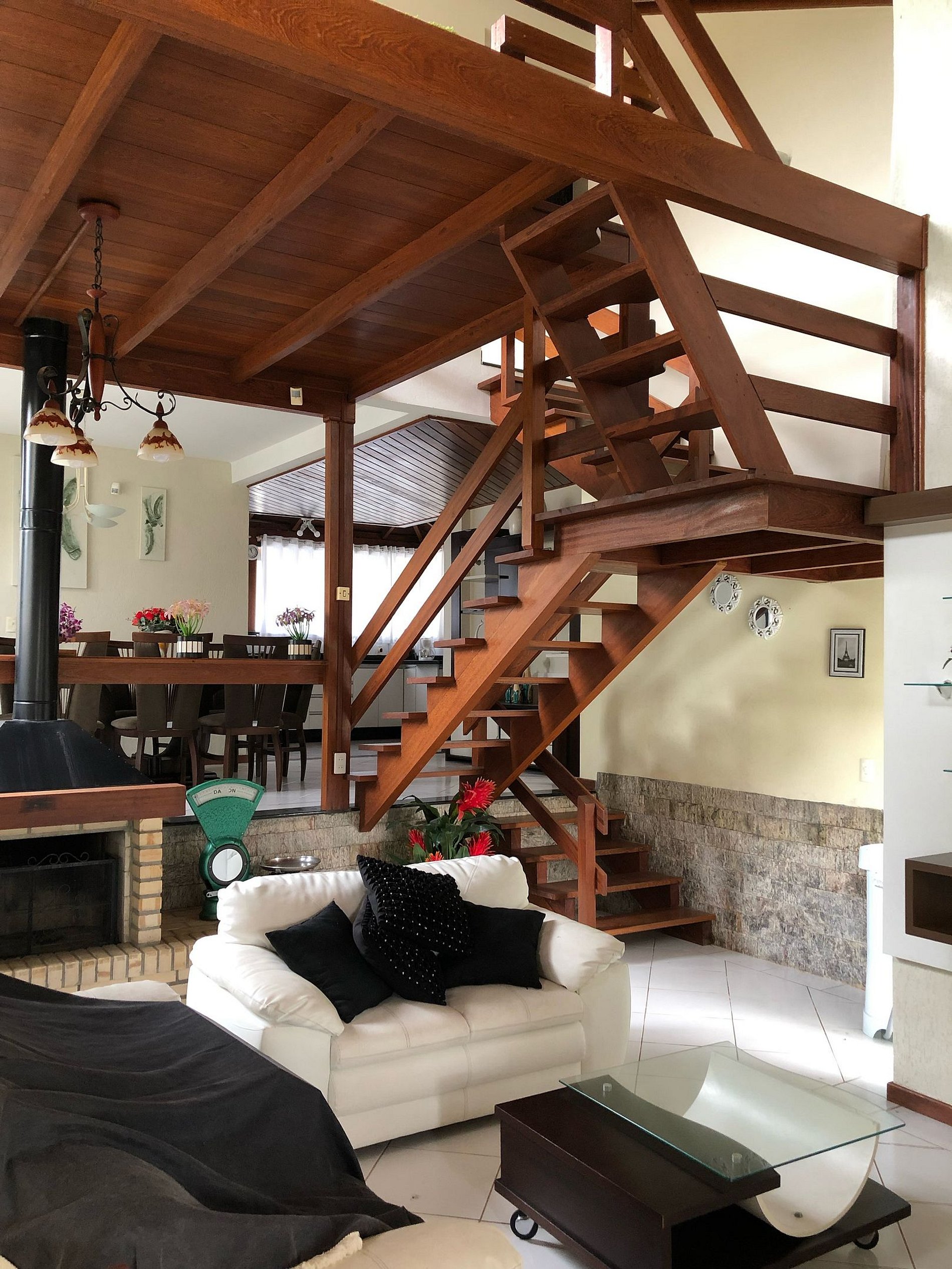 Casa maravilhosa com 3 quartos,com ar condicionado, Sendo um suíte, com closet, banheira de hidromassagem,cozinha equipada com eletrodomésticos, geladeira Frost -free.fogão, forno, micro-ondas.Sala de jantar integrada com a cozinha2 salas sendo uma com tv e lareira,um mezanino,copa, churrasqueira, circundada por varandas, garagem para 2 carros.