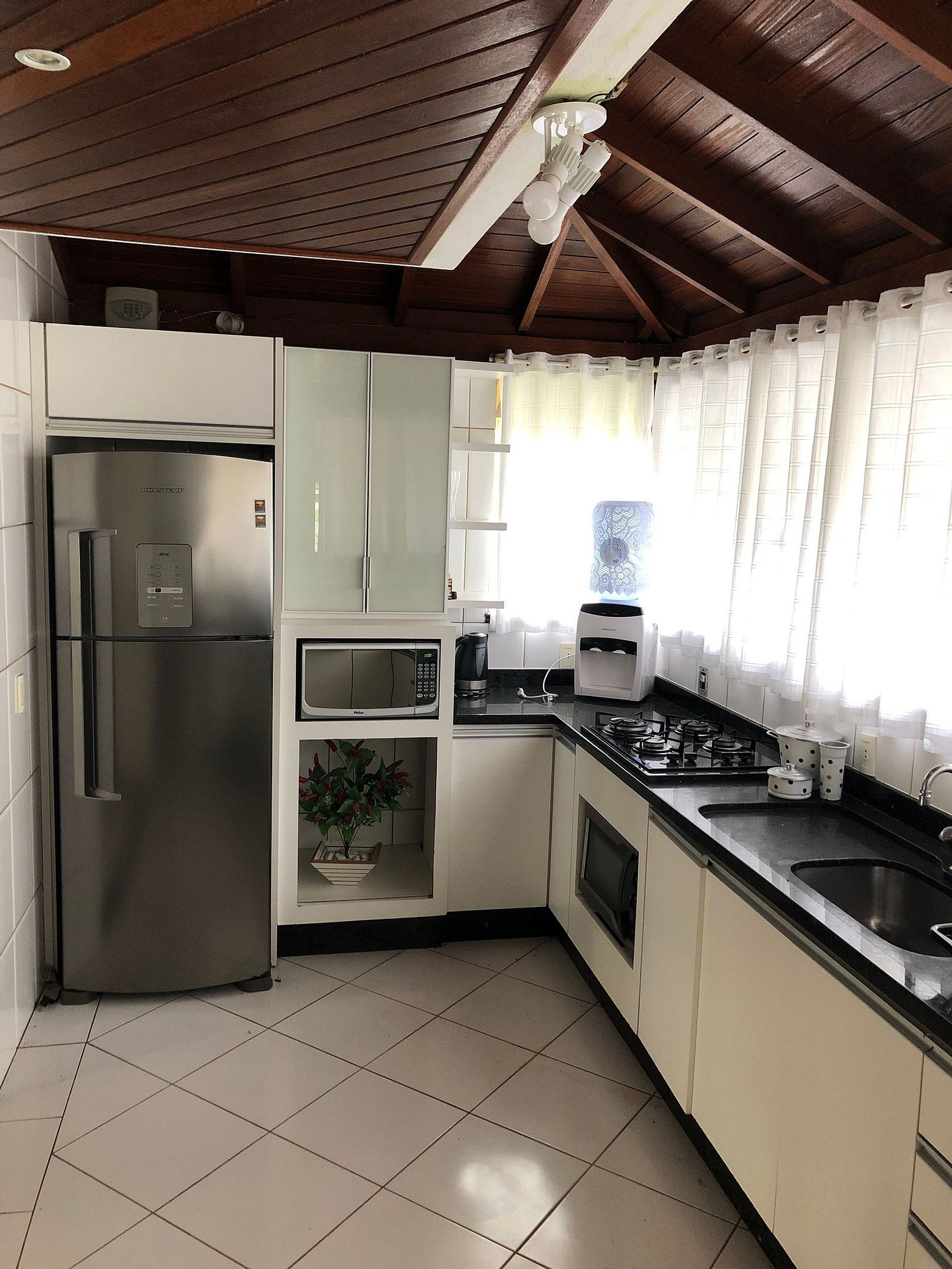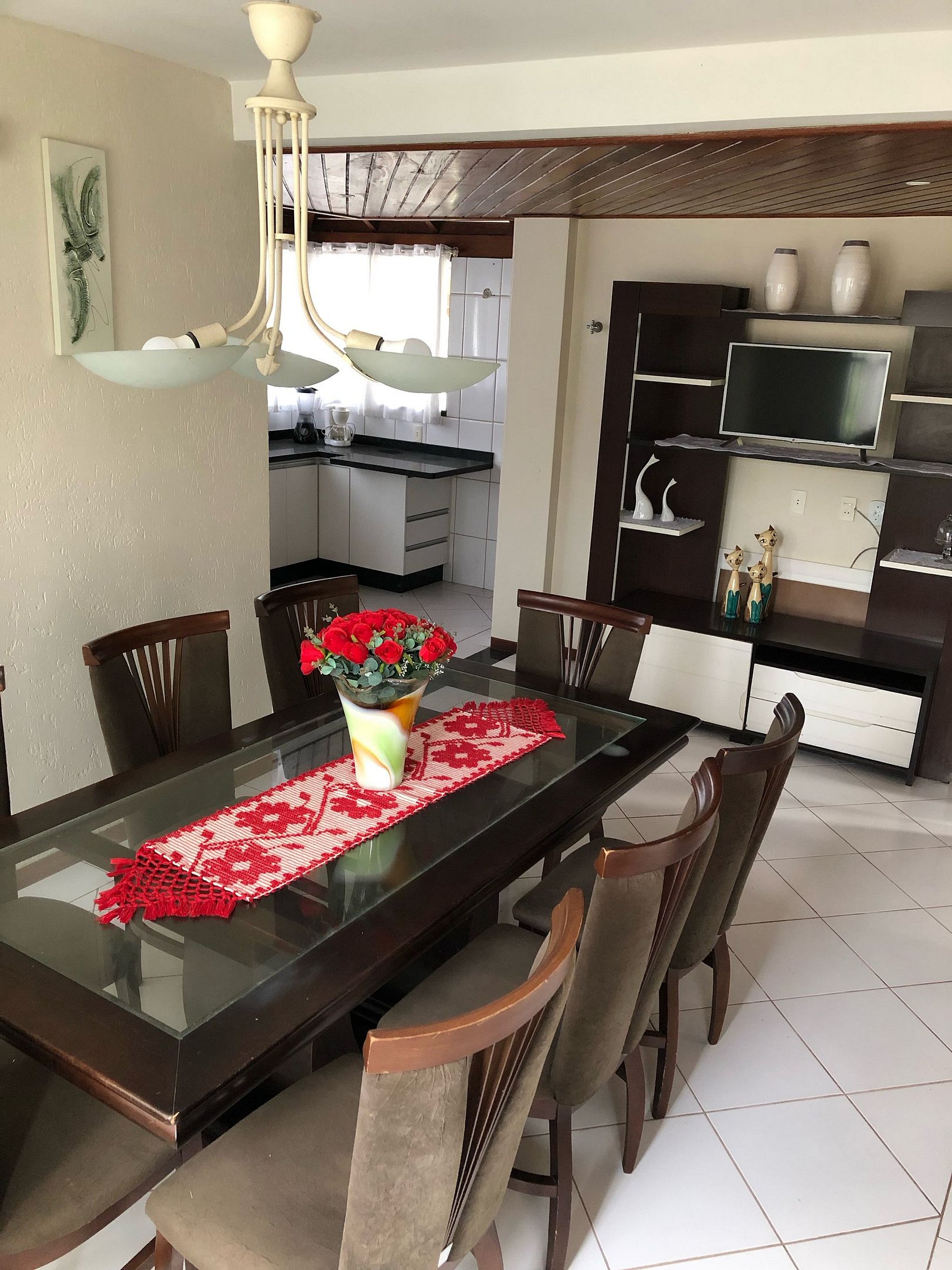 Casa maravilhosa com 3 quartos,com ar condicionado, Sendo um suíte, com closet, banheira de hidromassagem,cozinha equipada com eletrodomésticos, geladeira Frost -free.fogão, forno, micro-ondas.Sala de jantar integrada com a cozinha2 salas sendo uma com tv e lareira,um mezanino,copa, churrasqueira, circundada por varandas, garagem para 2 carros.