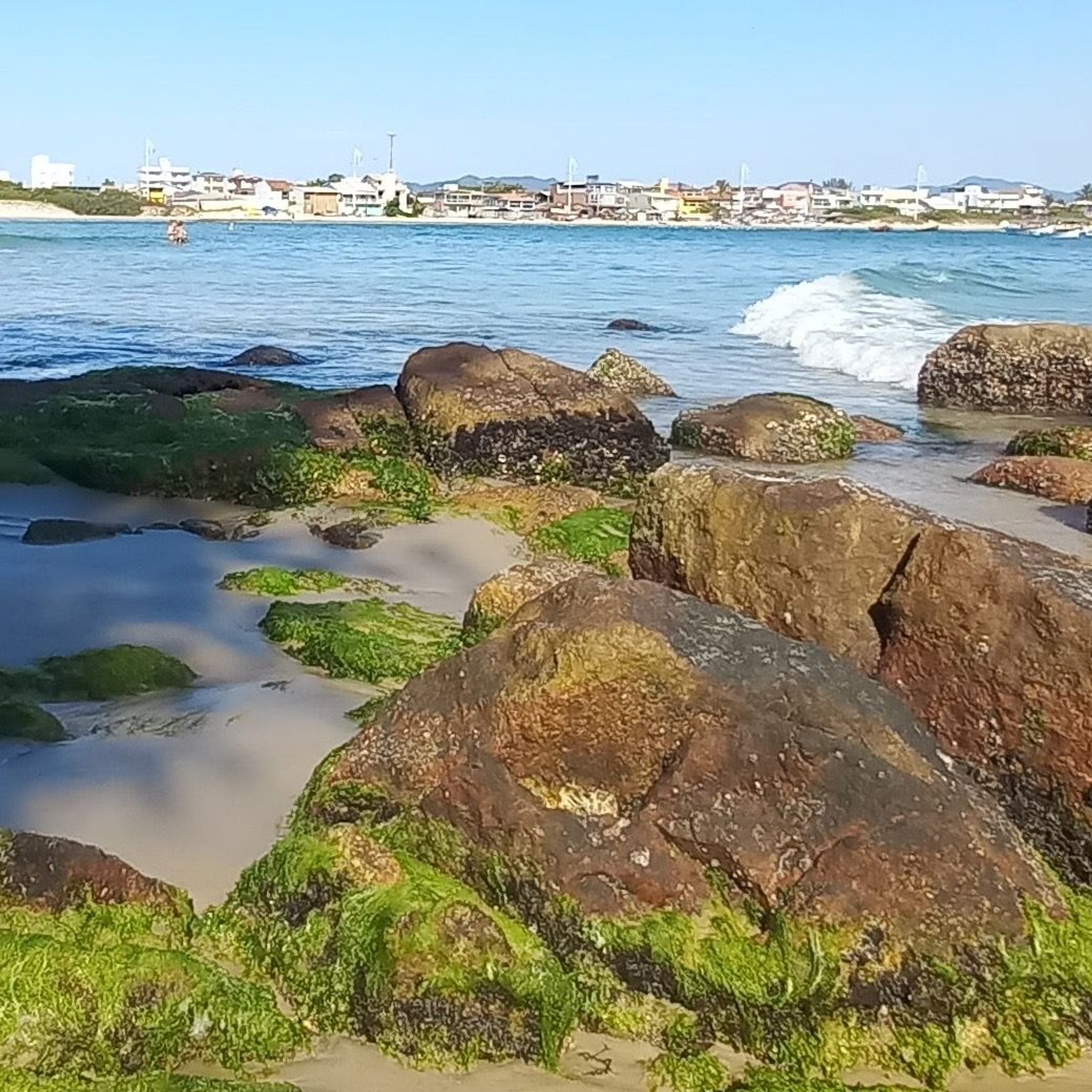 pé na areia com piscina