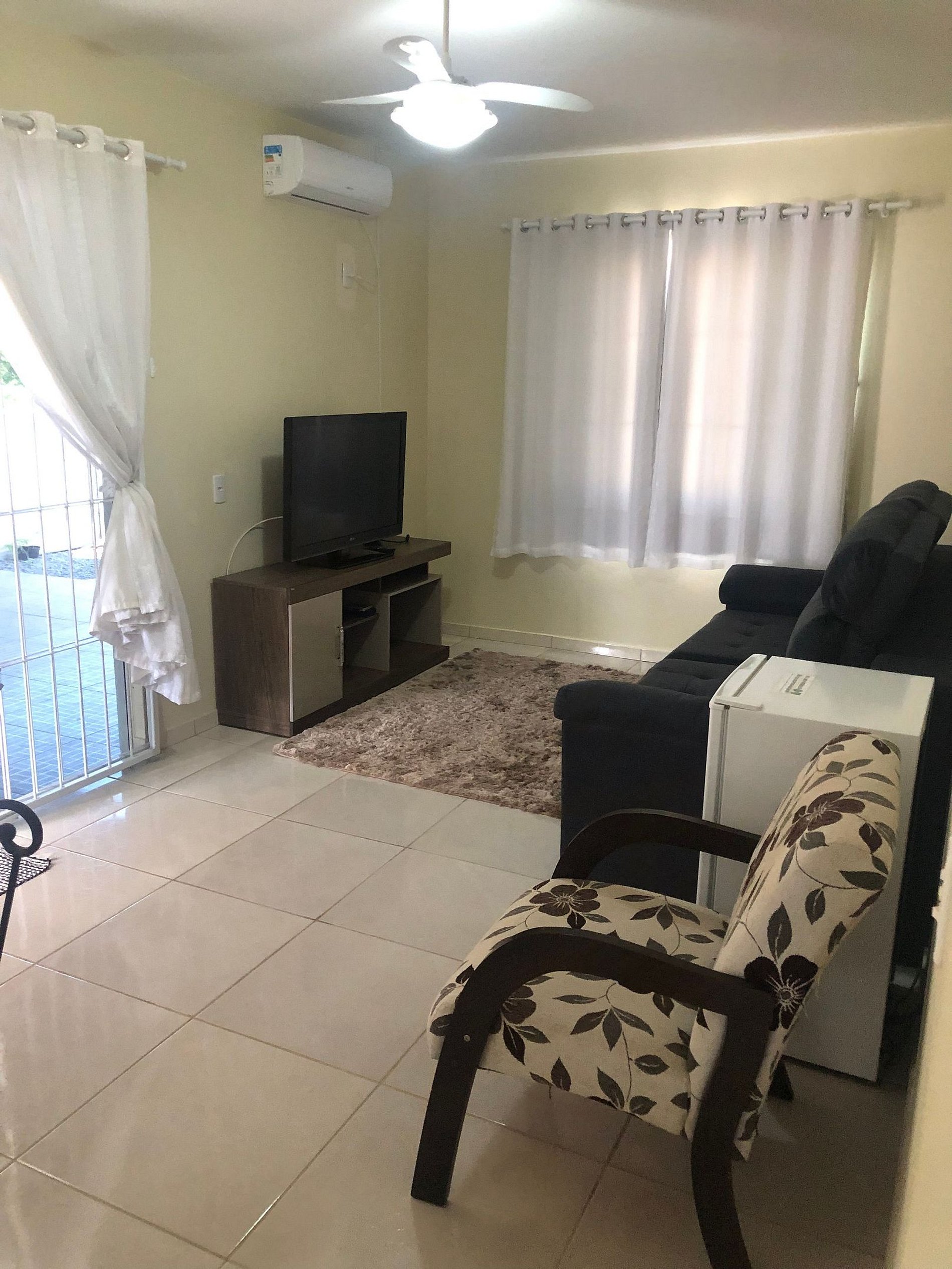 A casa é única no quintal com privacidade para os hóspedes.a Rua é tranquila com bom espaço externo, além dos muros pois com gramado, sem trafego