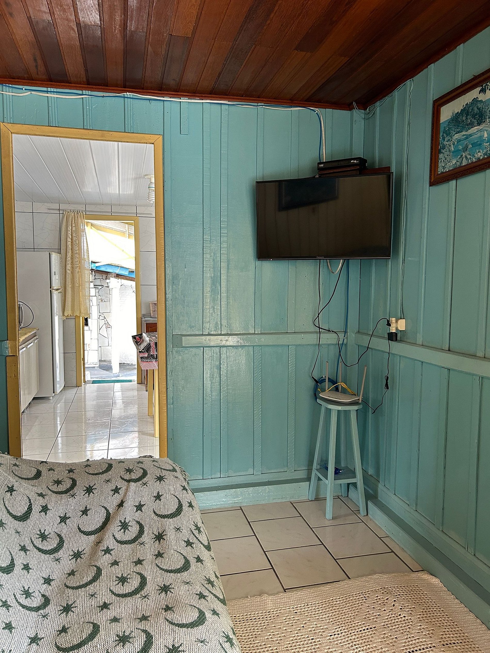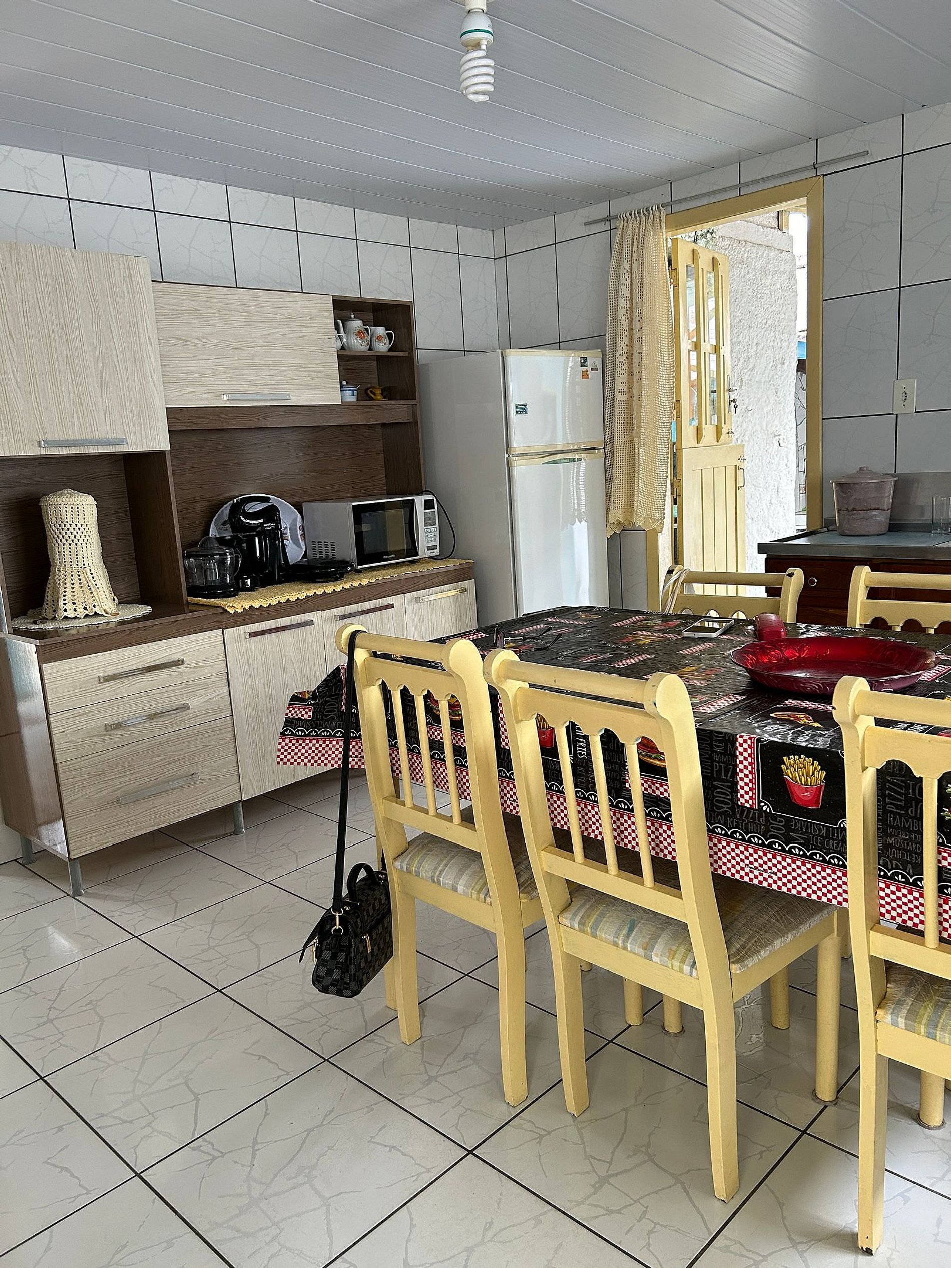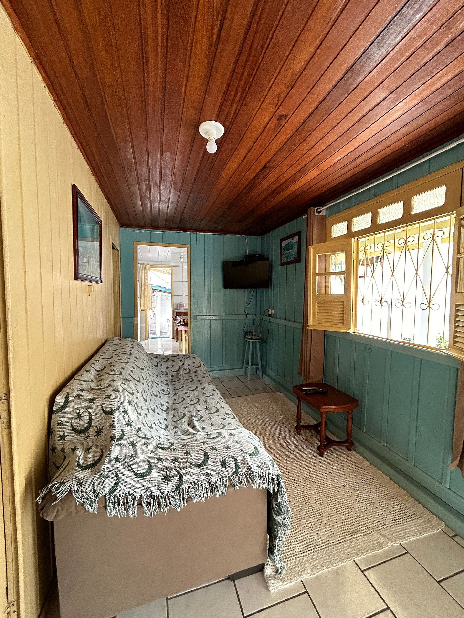 O espaço externo é compartilhado com uma pequena moradia onde reside a esposa do Vô, Ela já alugava sua casa para temporada como é um costume local, ceder sua residência como complemento de renda e o prazer de conhecer novas pessoas.