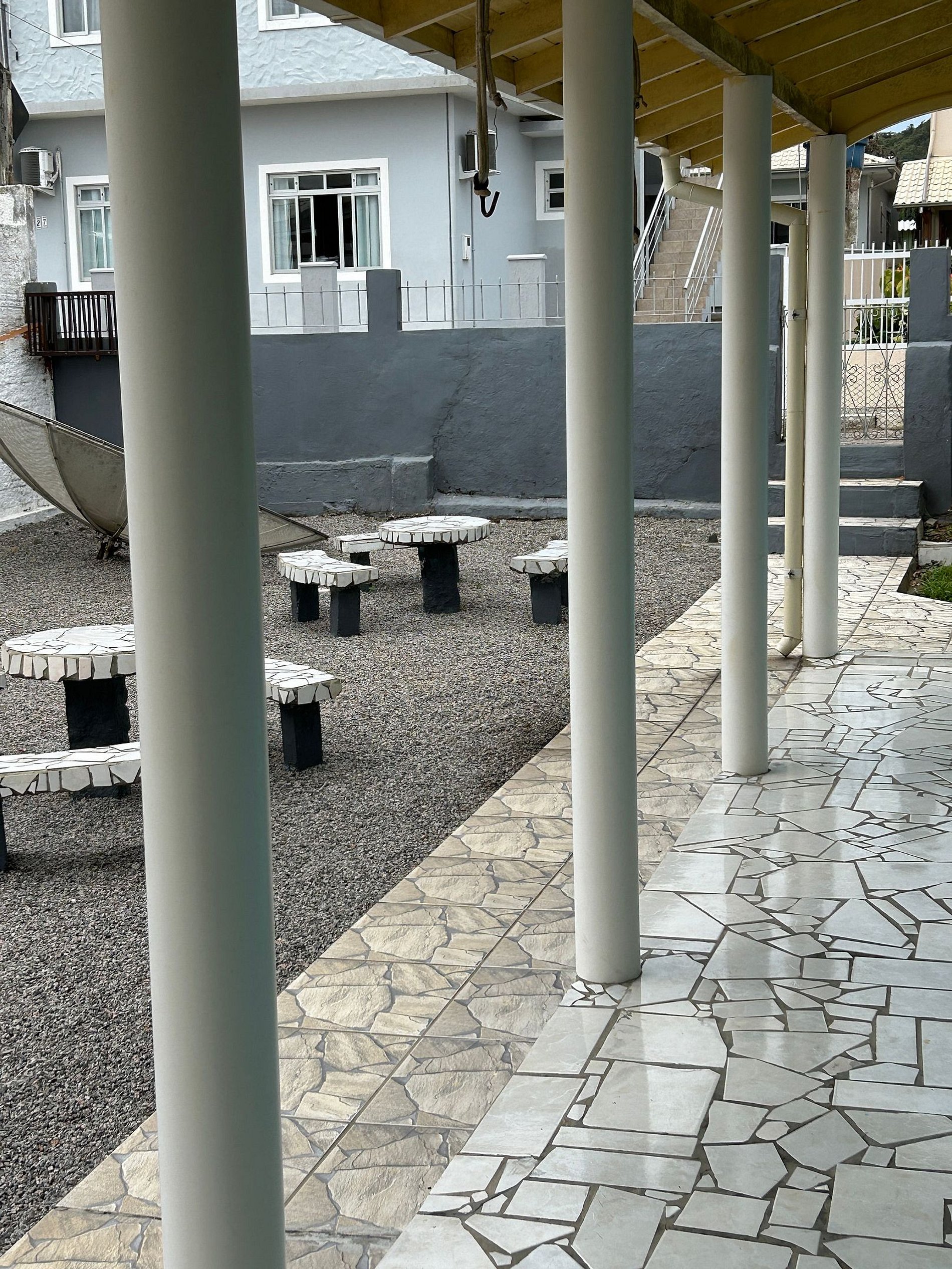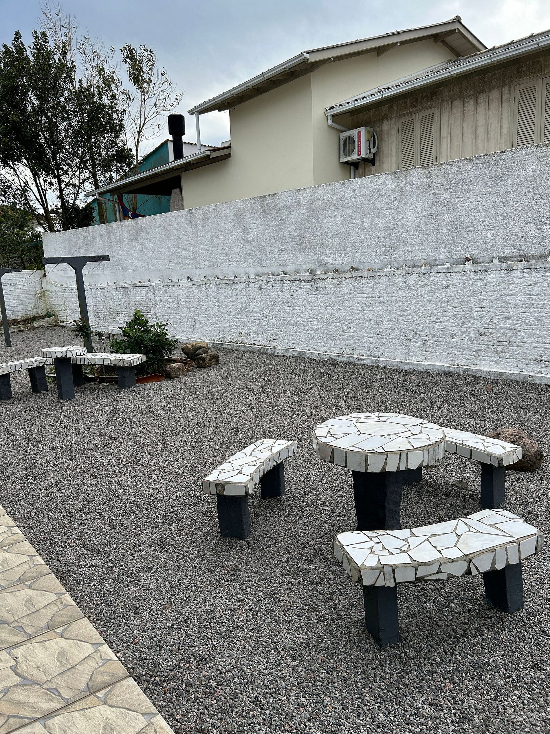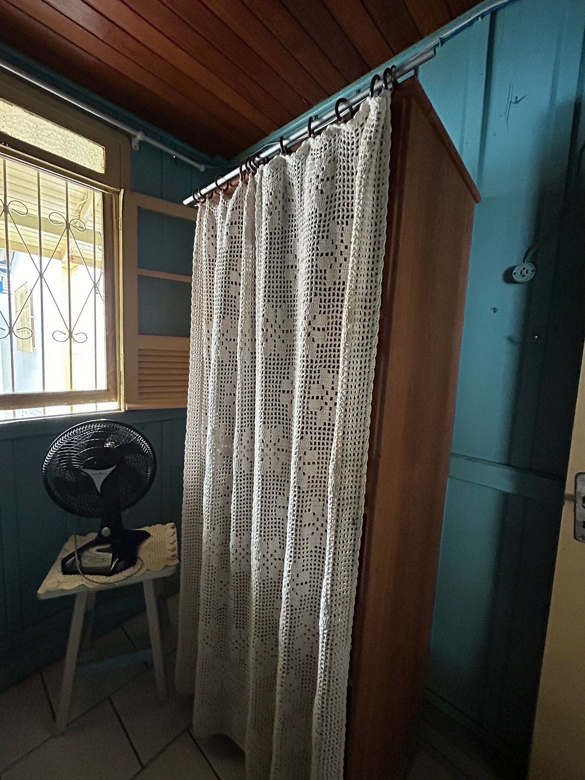 O espaço externo é compartilhado com uma pequena moradia onde reside a esposa do Vô, Ela já alugava sua casa para temporada como é um costume local, ceder sua residência como complemento de renda e o prazer de conhecer novas pessoas.